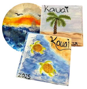 A: Definitely! Kids love pottery painting at our studio in Kauai, HI. It’s a family-friendly activity perfect for all ages. We also host pottery painting birthday parties for kids, along with a variety of other creative art projects for younger guests.
